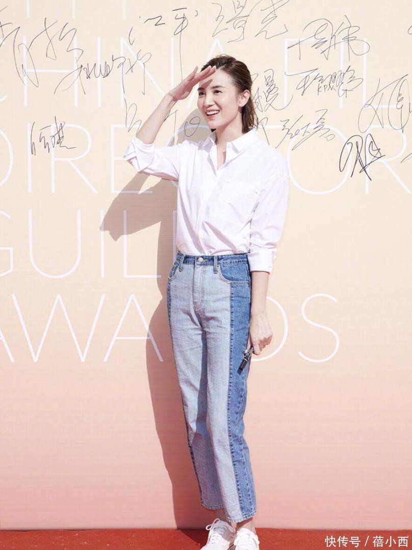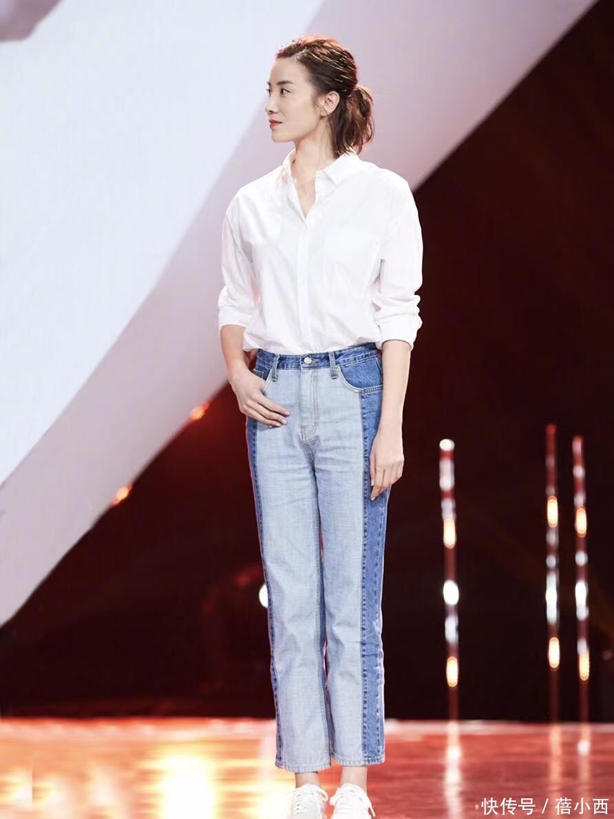 脚上穿了一对平底鞋,鞋面是白色臆度打算,与牛仔裤颠倒搭。