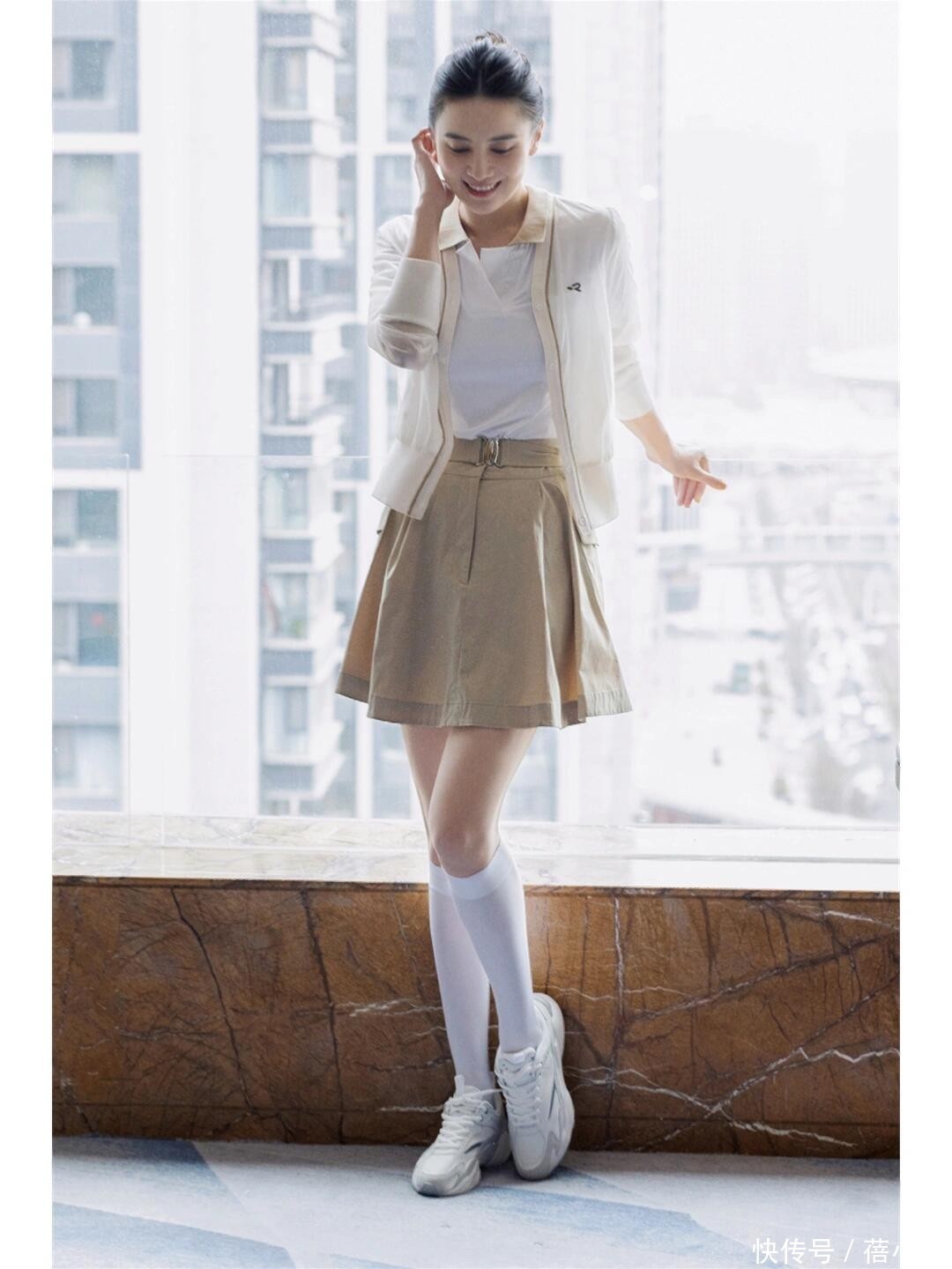 彩票网站注册皇冠信用正网脚上是一对领略鞋,袜子的出现让东谈主目前一亮,其是长筒臆度打算,快到膝盖位置;再加上是纯白色,一来可以保护小腿肌肤不被晒黑,二来衬得小腿更细了。